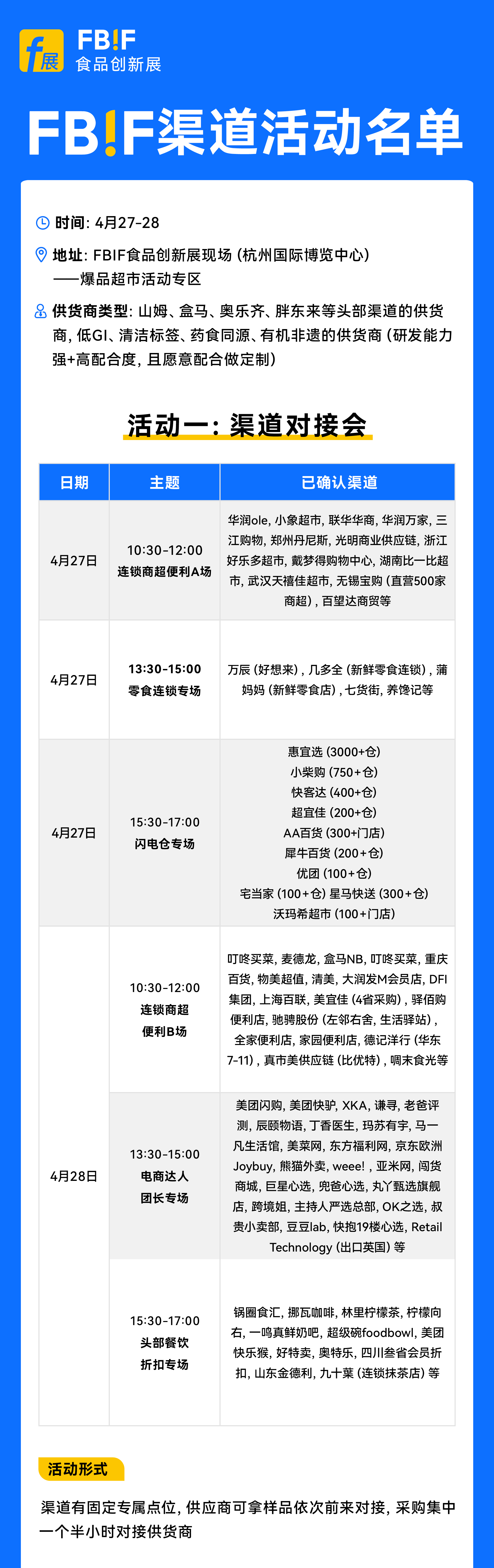 看点1、真实有料的零售渠道对接会展位搭好了,但客户会不会没来?这种焦虑我们可太懂了。所以我们把“人”这件事做得特别认真——截至发稿当日,已经有超过3119位专业渠道嘉宾注册。按当前进度,现场预计将有6000+专业零售与渠道买家到场。从专业买方的定向招募筛选,到顺利到场的组织保障,再到交流节奏的设计与现场体验的细致打磨,每一个环节,我们都以FBIF论坛的标准来准备。希望你能见到关键的人,舒适自然地聊具体的事,最好在劳动节前,带着订单一起回去。